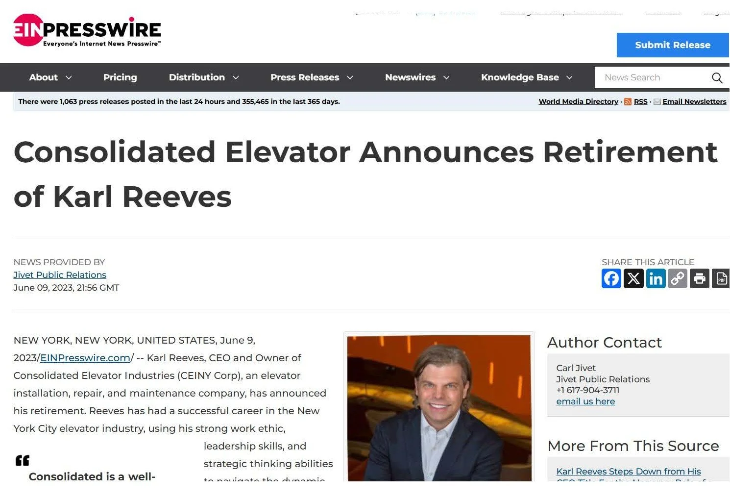 Karl later assumed ownership of his father’s company, Consolidated Elevator, where he spearheaded a series of acquisitions and ultimately negotiated its strategic sale to Arcline Investment Management LP, a private equity firm focused on critical industries.